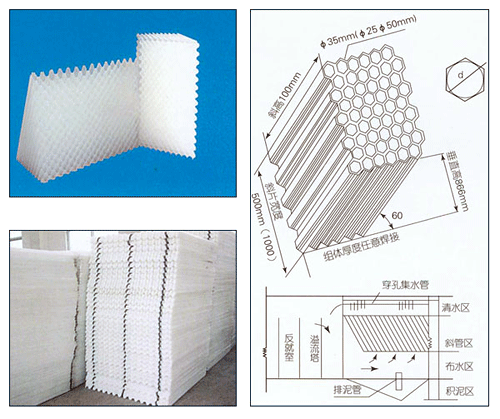 蜂窩填料有斜管和直管兩種,材質有PP、PVC、FRP三種。