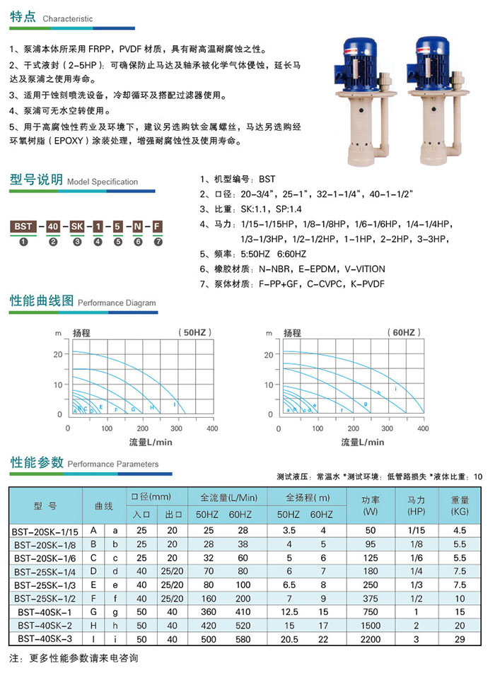 BST可空轉直立式耐酸堿泵浦