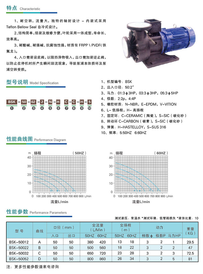 BSK可空轉臥式耐酸堿泵浦