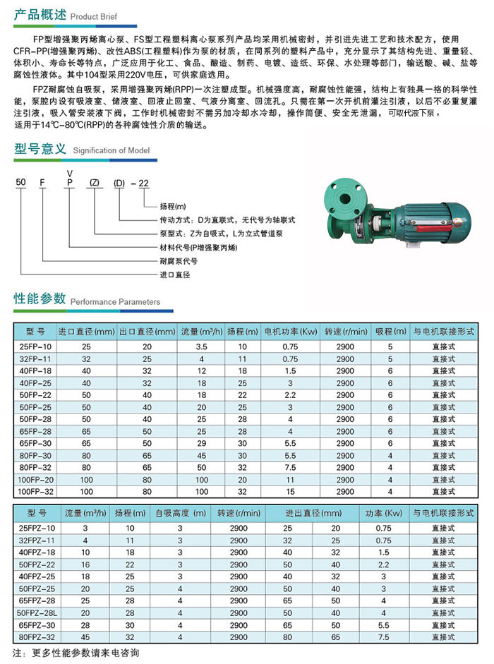 FP/FPZ型增強聚丙烯耐腐蝕塑料泵