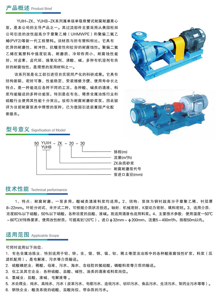 YUIH-ZK、YUHB-ZK耐腐耐磨砂漿泵